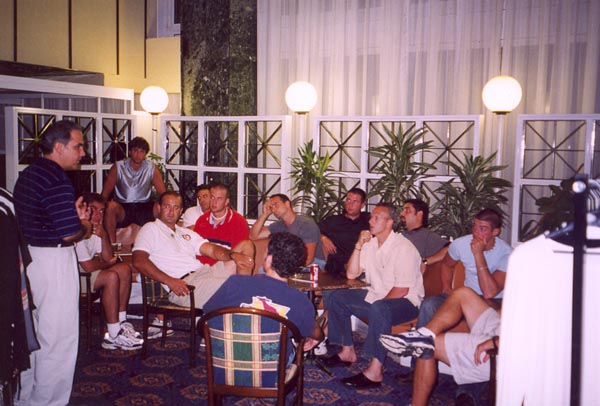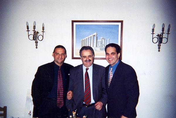 Chris in a lighter moment with Panos Mitsiopoulos and Dimitri Gousios of the H.A.B.F.