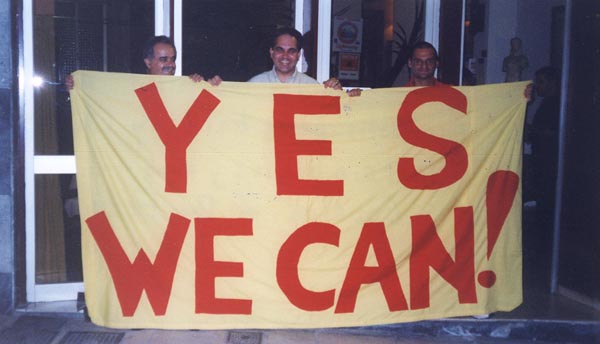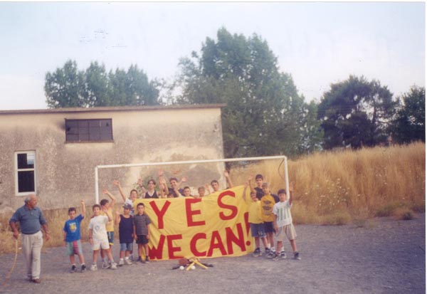 The fabled cloth " Yes We Can" banner made it 5000 miles to Greece. These kids know they can play.