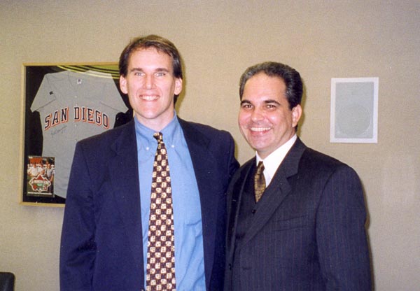 Jim Small of Major League Baseball International with Chris Karalekas at MLB office.