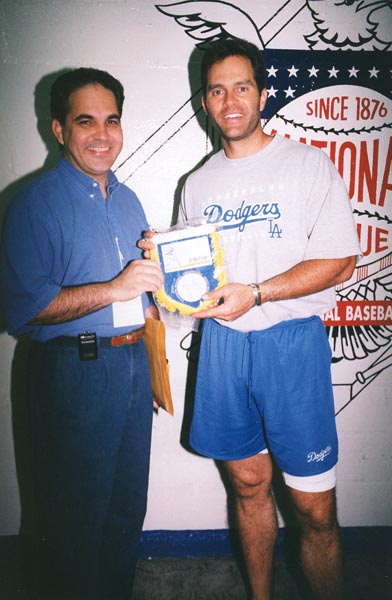 Here's Chris meeting gentleman Eric Karros while with the L.A. Dodgers before a game at Shea Stadium in New York.