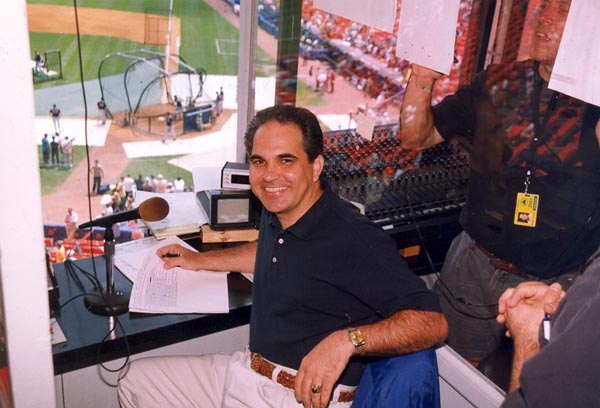 Here Chris is preparing to announce starting lineups over the public address system in Greek.