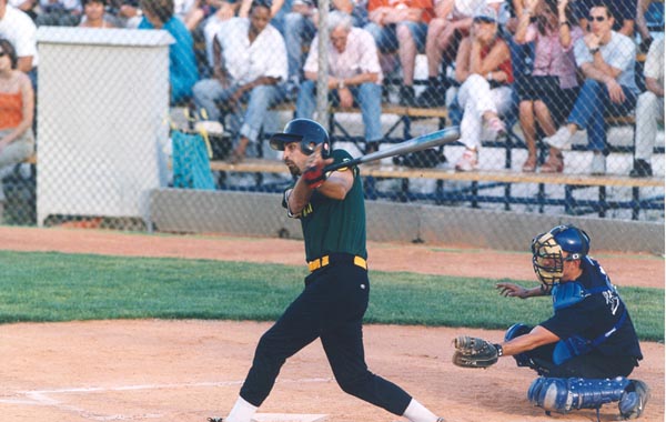 Here National Greek team Olympic Baseball coach Mike Riskas is flanked by Gus and Chris Karalekas after an Athens All-Star game in 2000.