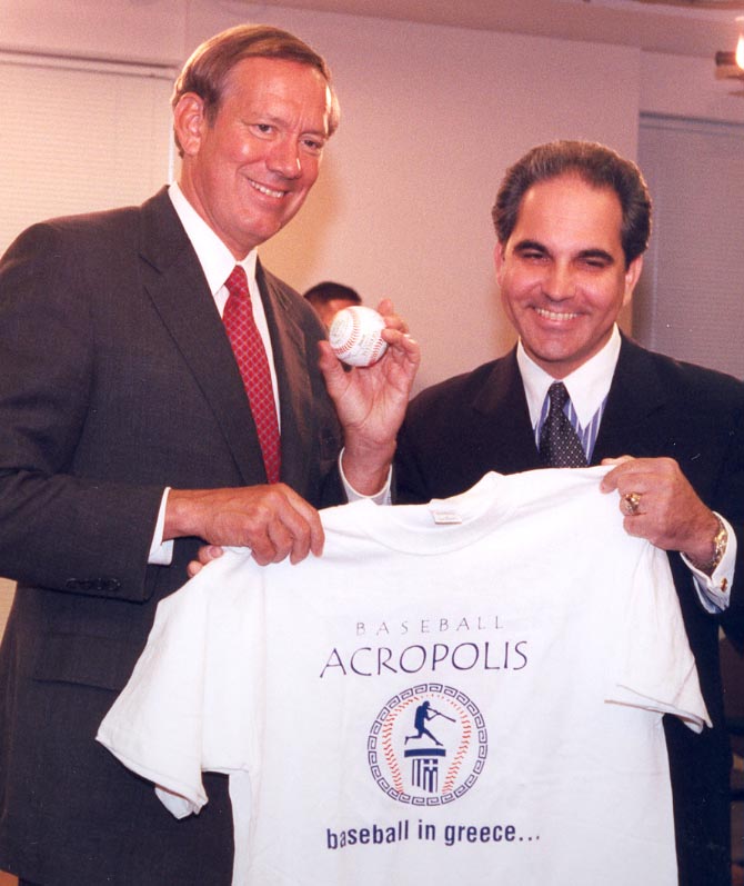 Mr. Peter Angelos and Chris at a press conference in Athens announcing the Angelos effort to lead the Greek National Baseball team recruitment with the federation.